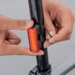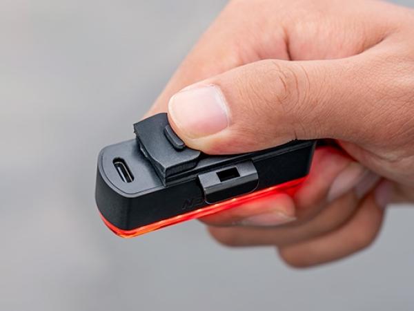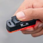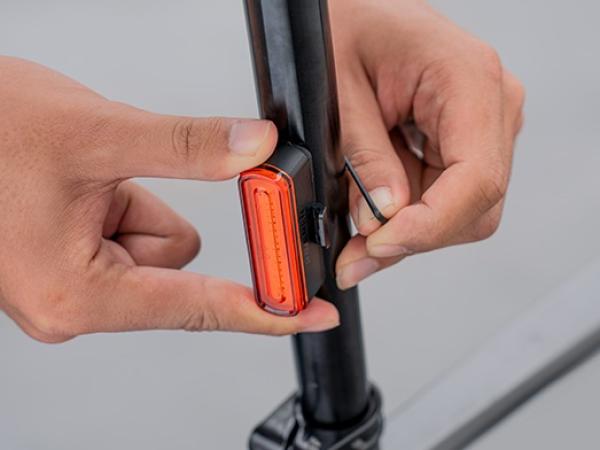 Schieben Sie die Leuchte einfach in die Halterung hinein oder heraus; sie kann auch direkt an einige kompatible Satteltaschen oder Rucksäcke geklemmt werden.